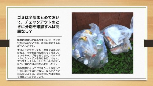 高校教諭でアウトドア部顧問をしているJACオートキャンプ指導者からコロナ禍のアウトドア部の活動の様子を報告いただいた。今回は、武蔵越生高等学校の文化祭で普段使っているキャンプギアの展示をメインに、キャンプマナークイズ、日本オートキャンプ協会よりご提供いただいたロケーションガイドの頒布などを企画として行った。当日の模様を、レポートとしてお届けする。