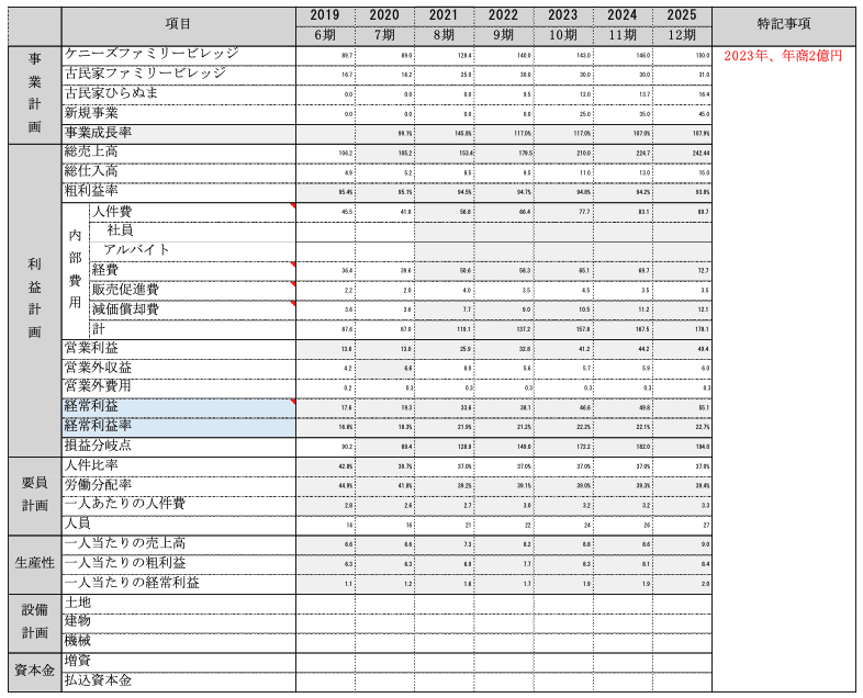 5年先の中長期の計画です。売上・利益・人件費・雇用計画を作成費し、この計画から逆算して課題を作成、実行していきます。