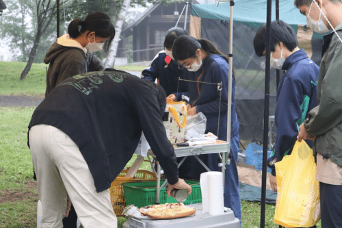 テントの片付けをする際に、雨で濡れたテントを乾かすこともできなかったので、軽く水を拭き取ってビニール袋にいれて持ち帰りました。普段と違う片付け方で手順が多くて少し苦戦しましたが、顧問の先生の指示もあり、普段と同じくらいの時間で片付け終えることができました。