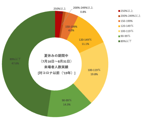 来場人数が昨対100%以上との回答合算が昨夏調査の47%から微増している。