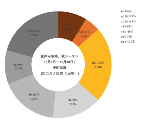 予約の推移も昨年調査の傾向と変化は見られないが、「110%以上」という回答合算が9月上旬の調査時点で13%もあったことから、早い段階から予約が埋まる傾向が加速していると見られる。