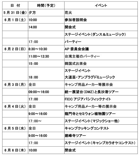 国際オートキャンプ連盟(FICC)に加盟する、韓国、台湾、中国、日本で構成されているアジアパシフィック委員会が開催するもので、年に一度アジア各国のキャンパーが一同に会する一大イベント。