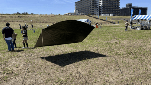 なお、大屋さんは勤め先のキャンプイベントでの経験をお持ちであったため、その卓越した教え方により、午前の回において、大屋さんが担当した家族は簡易タープの設営まで体験することができました(感謝です!)。