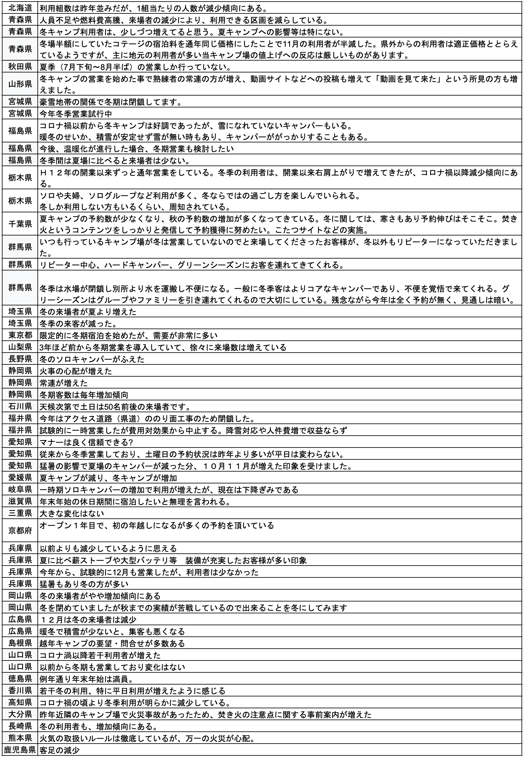- 目的:全国キャンプ場の2024年秋冬営業状況