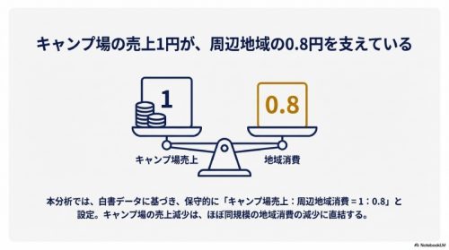 キャンプ場売上:周辺地域消費 ≒ 1:0.8 を採用しています。