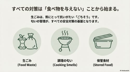 熊を寄せ付けないための基本対策 ― 食べ物管理の徹底