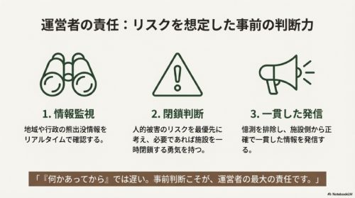 「何かあってから」ではなく、リスクを想定した事前判断が、運営者の責任として求められます。